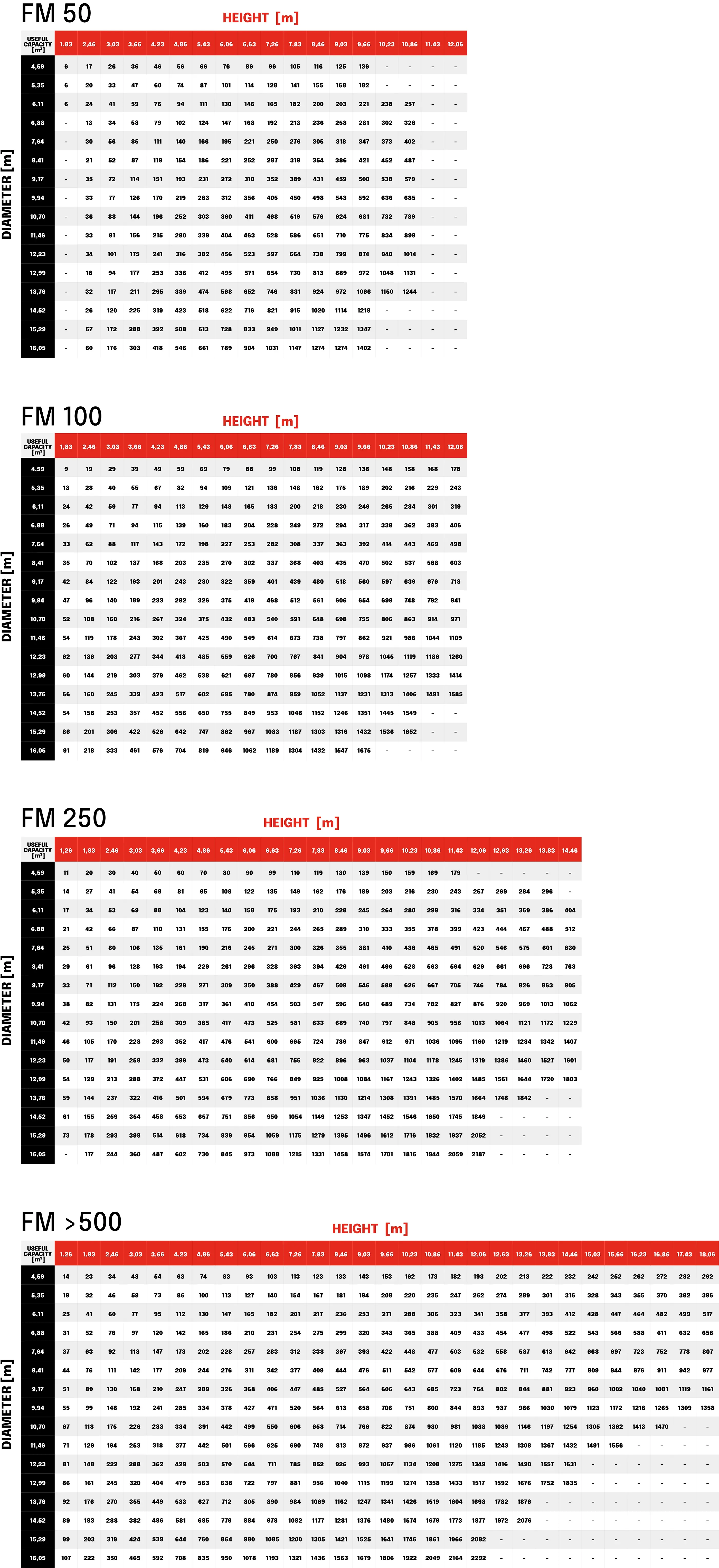 The stated usable capacities are indicative, as they may vary depending on the seismic zone, soil conditions, and the accessories required in the tank.